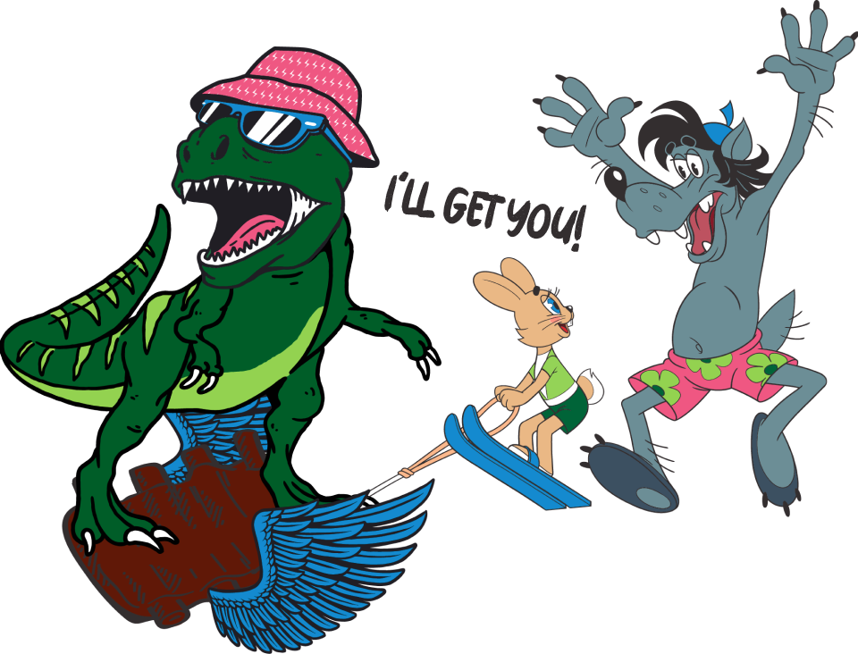 hard-boiled dinosaur Frank and Piggy pig meet the favourite characters for all generations - from "I'll get you!", "Mowgli" and "Winnie-the-Pooh"